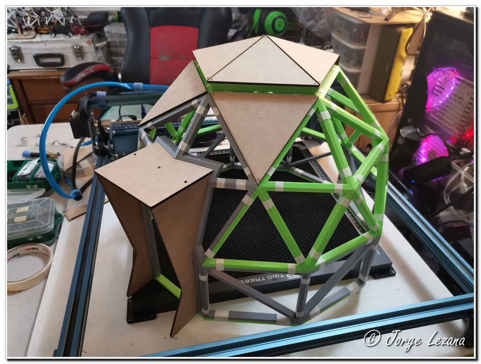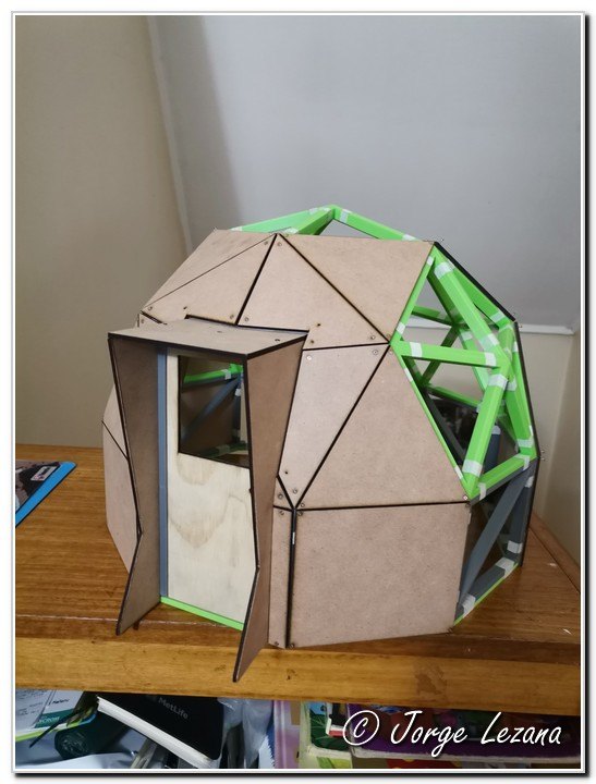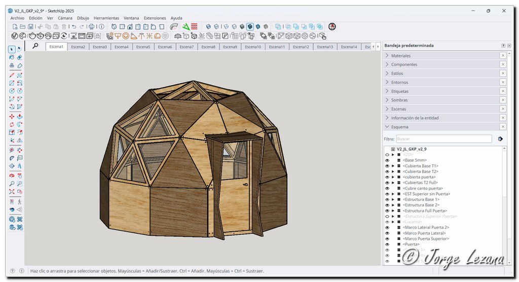 Después de estar en un curso de diseño de Domos, de la empresa española Kupulart (www.kupulart.com) la cual animo a que sean parte de su comunidad si son amantes de estas estructuras, se los recomiendo enormemente, soporte 100% online y profesionalismo de excelencia, Jeroni a la cabeza es una biblioteca andante y con una disposición a enseñar que destaca por sobre muchos cursos online en la actualidad no solo aprendes sobre este hermoso arte si no te da muchas a ideas para tus propias modificaciones y estructuras que se te puedan ocurrir, ellos cuentan con grupos en Telegram (https://web.telegram.org/a/#-1002010947740) y su página web, es lo que uno sueña cuando quiere aprender alguna diciplina, con este empujón, aprendí a usar la herramienta de SketchUp que es parte del aprendizaje del curso, a pesar de que el curso esta muy bien estructurado para construir estos domos de forma REAL, mi interés en el fue meramente aprender algo nuevo y que para no quedarme con la teoría, utilice todo ese conocimiento para el diseño en 3D de una maqueta de 40cm de un domo Frecuencia 2, que construí lentamente, partiendo con Freecad que es un programa que ya venía manejando de muchos años, pero que termine usando Sketchup para todas las partes del domo, y termine cortando con laser la cobertura y asi concluir de principio a fin este diseño, les dejo el proceso en estas fotos de como fue tomando forma, desde que se toma la estructura desde www.acidome.com, importándola a SketchUp, pruebas de renderizado en V-Ray para luego comenzando el desafío de crear cada parte y llevarlo al sistema «GoodKarma Pro» que en cuanto a estructura, terminaciones y diseño, está a otro nivel, y para el final he realizado unos conectores tanto para F1 F2 y F3 para usar palitos de 2.5 a 3mm para crear de manera simple unos domos para Niños, espero lo disfruten tanto como yo.
