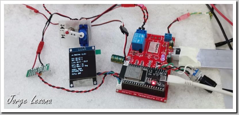 PCB, Servo, Pantalla, Interruptor de 12 Polos, ESP32, Relay, Enconder, Sensor de tensión, etc.