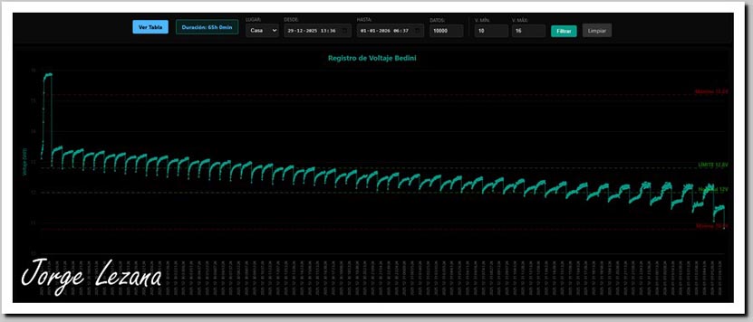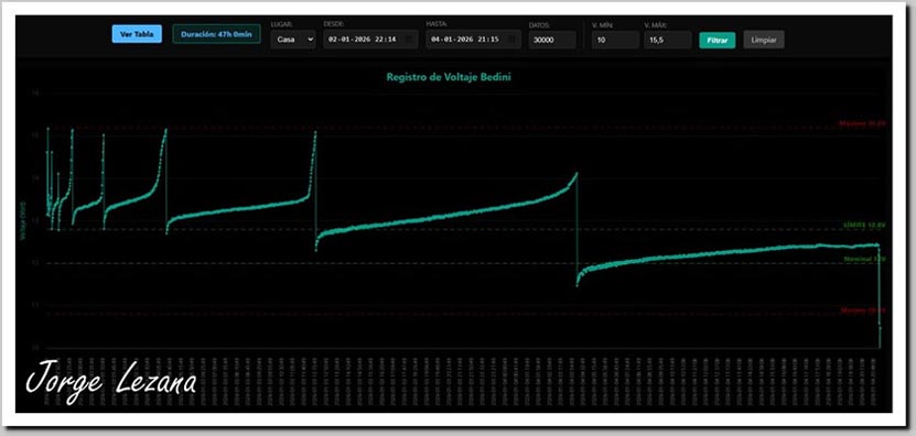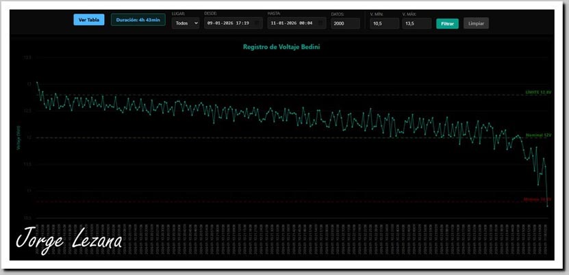 Los datos históricos de esta prueba pueden verificarse en:Test de carga baterías en Paralelo