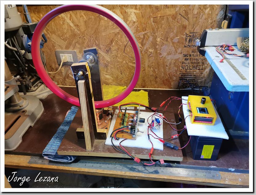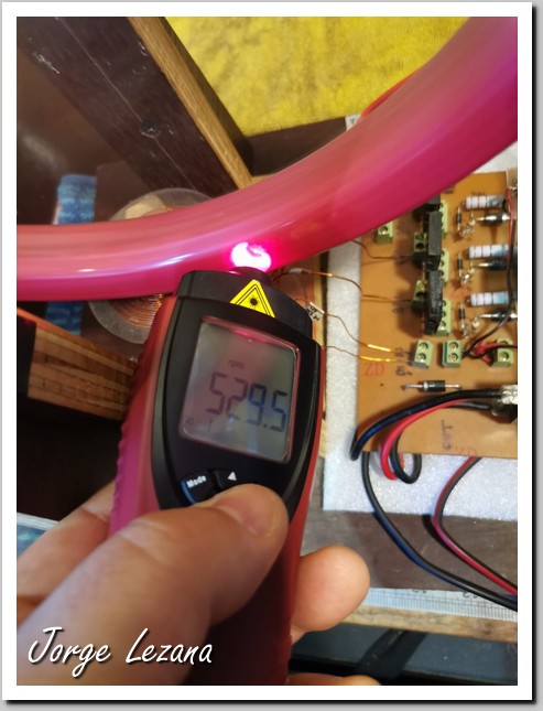 OBS 2: Durante todo el proceso de rotación y transferencia de carga, la rueda permaneció girando a una velocidad constante (entre 520 y 540 RPM) sin presentar variaciones ante el intercambio de baterías. Es importante destacar que, actualmente, el sistema genera un trabajo mecánico considerable que no está siendo utilizado. De esta rotación inercial se puede extraer energía mecánica adicional (mediante inducción o acoplamiento) que, por el momento, representa un excedente de potencia disponible pero no capturado.